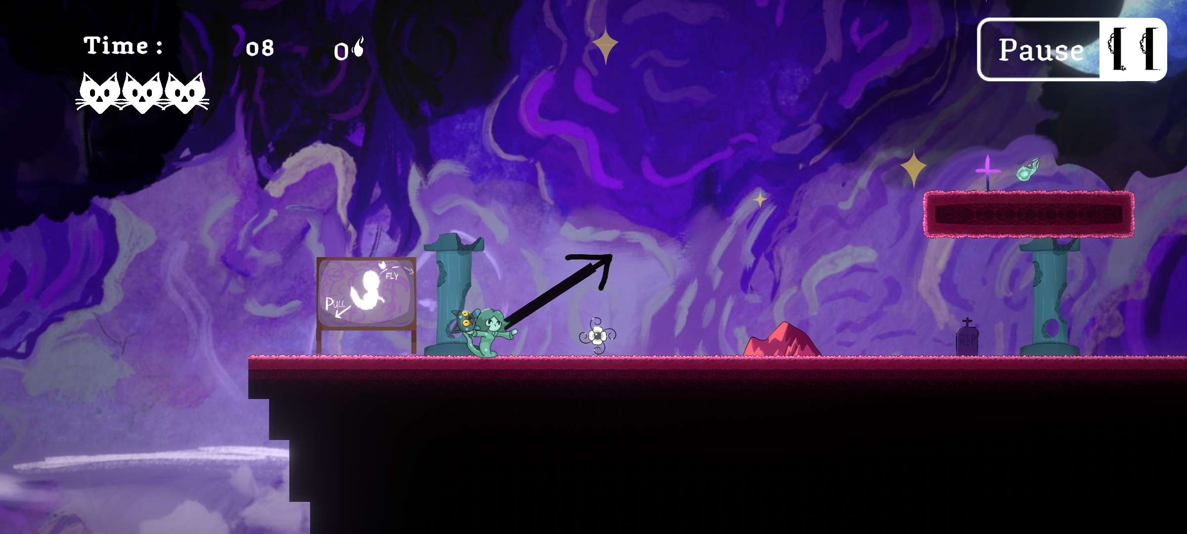 Your main method of movement is the cannonball launch. To perform a launch, simply press and hold on the Witch and her cat - and then drag back to aim your slingshot and control its power. When you’re ready, just let go and blast off!